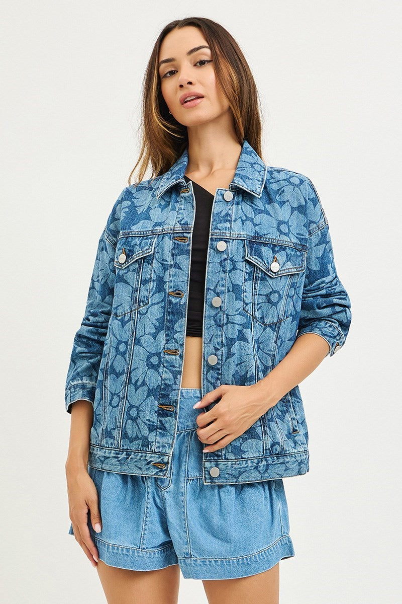 Denim Flower Print Jacket