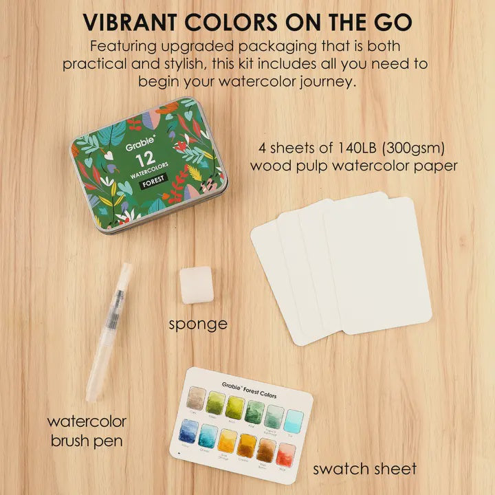 Watercolor Pocket Set w Brush - Forest Colors