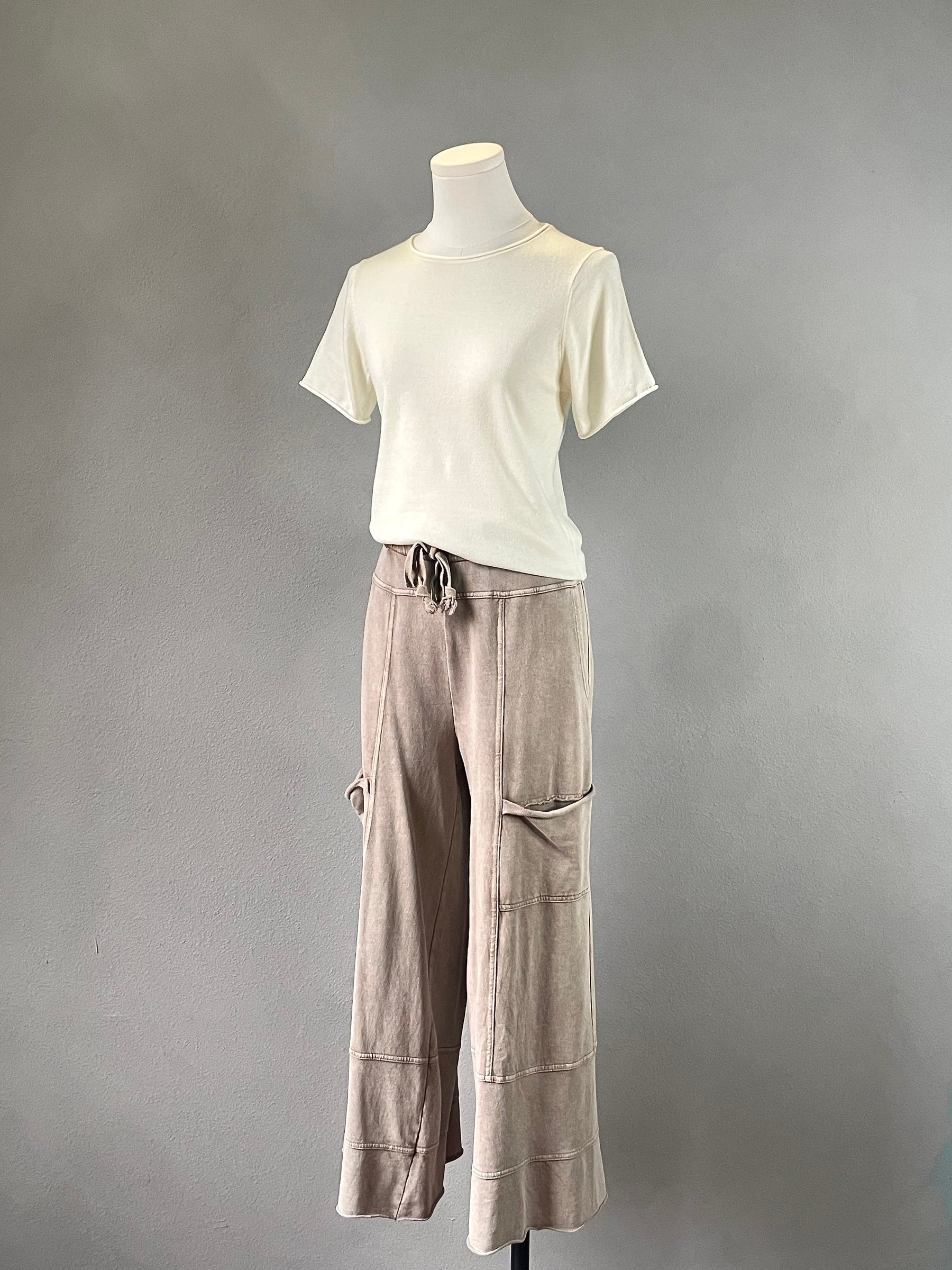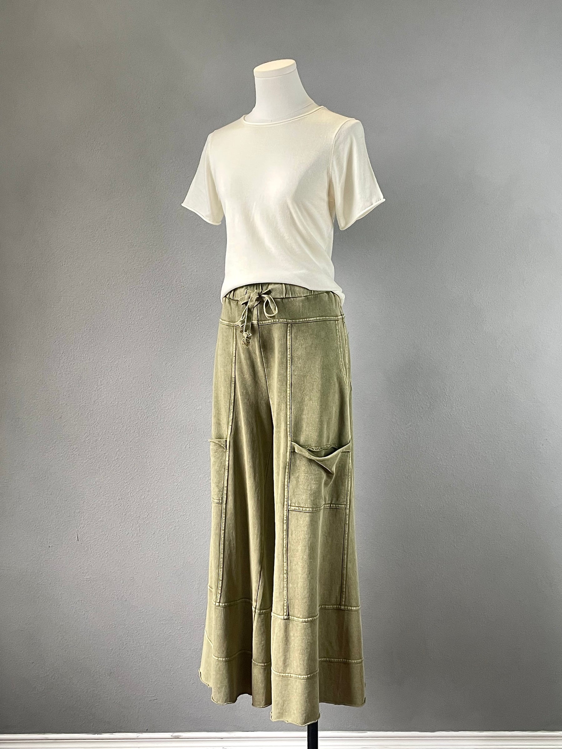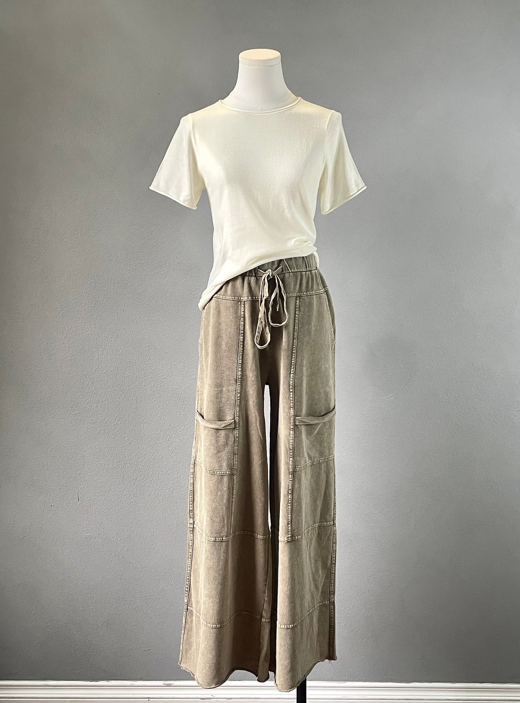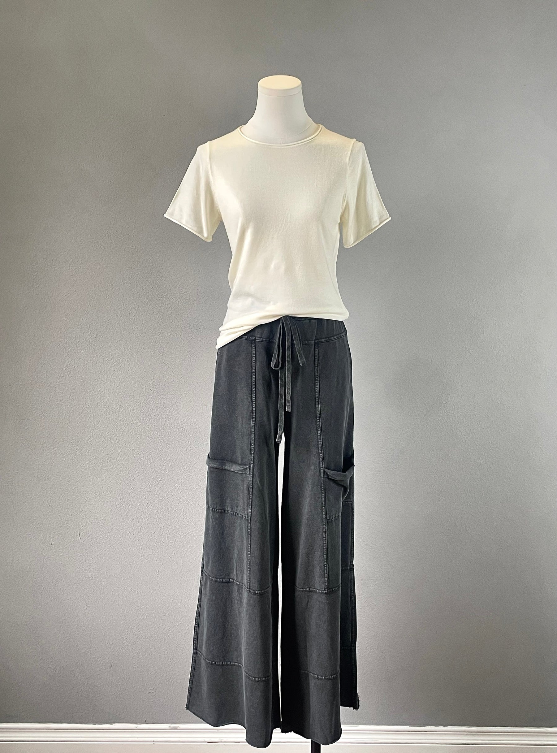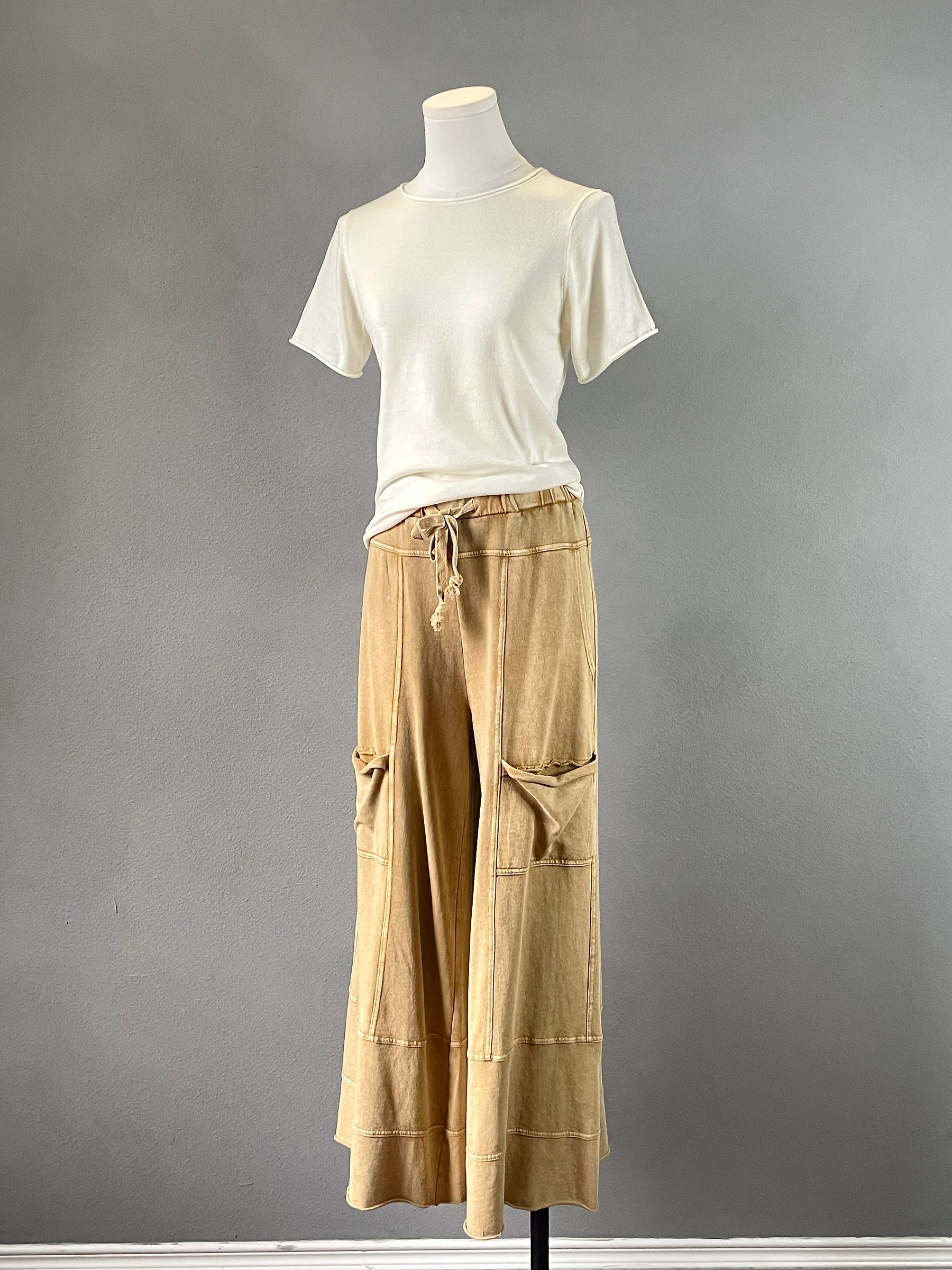 Comfy wide leg pants with lots of pockets.